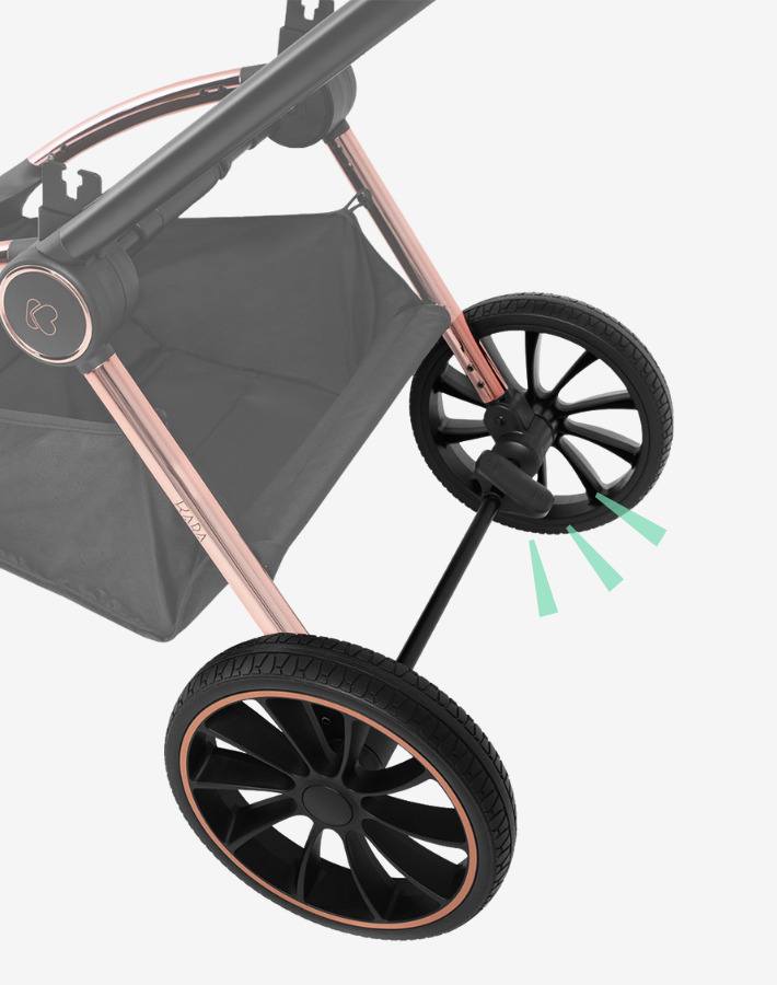 • 360 градуса въртене на предните колела със заключващ механизъм;