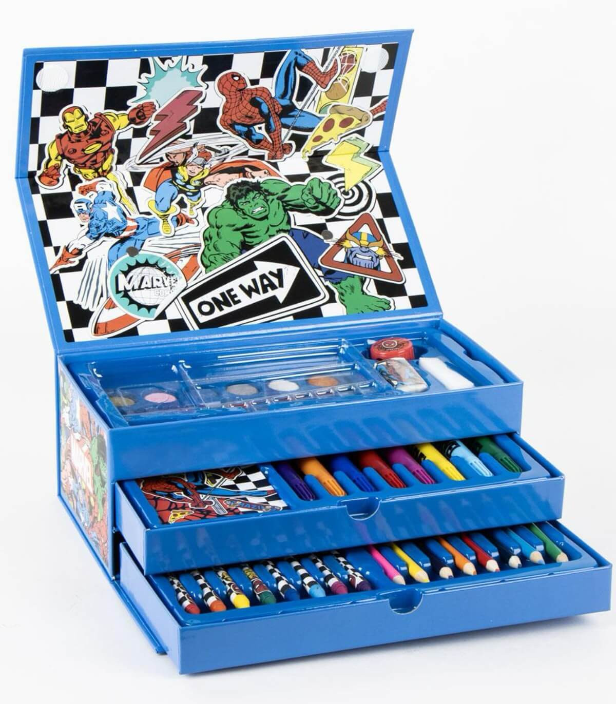 Триетажен творчески куфар / комплект за рисуване, който е компактен, удобен и подходящ за пътуване;
