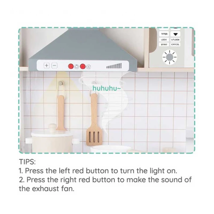 • Изработена от дърво, кухнята е издръжлива и сигурна за игра;