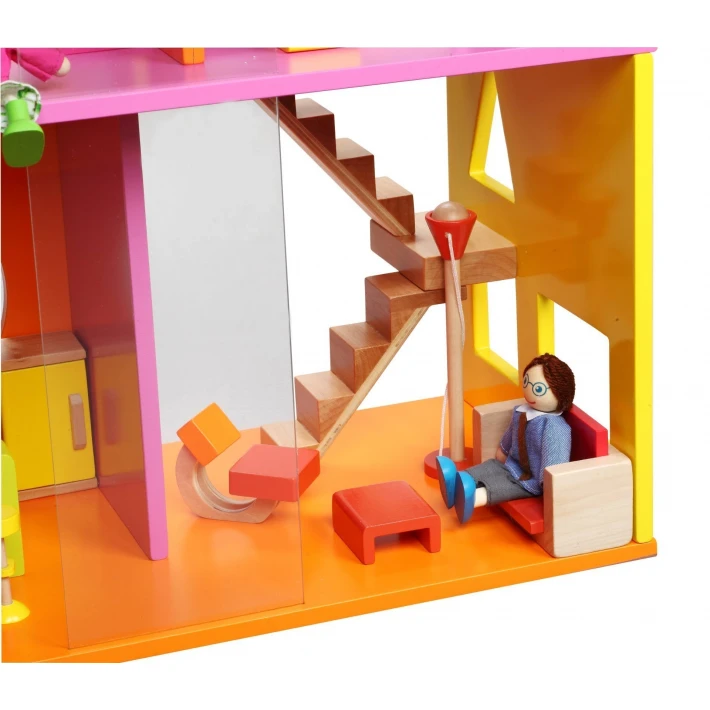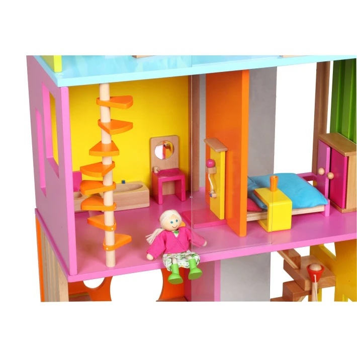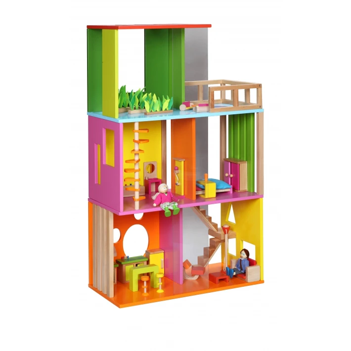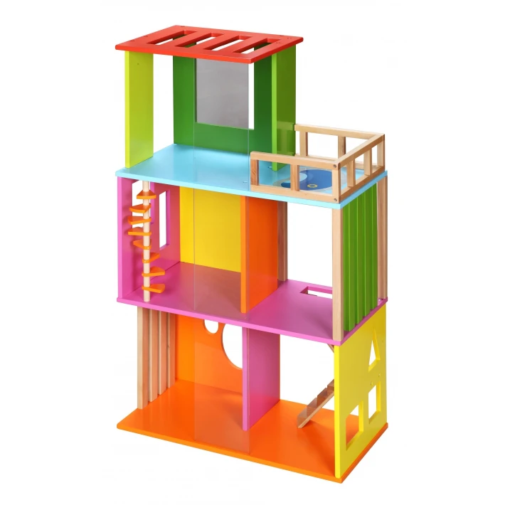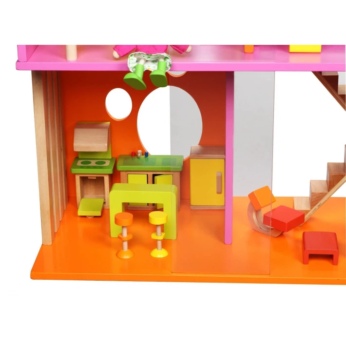 Изработена от най-естествения материал - дървото, тази къщичка е здрава, стабилна и най-вече с атрактивна съвременна визия, оборудвана с всичко, с което трябва да разполага един приказен дом - басейн, гараж, градина и голям брой стаи, в които има място за много обитатели;