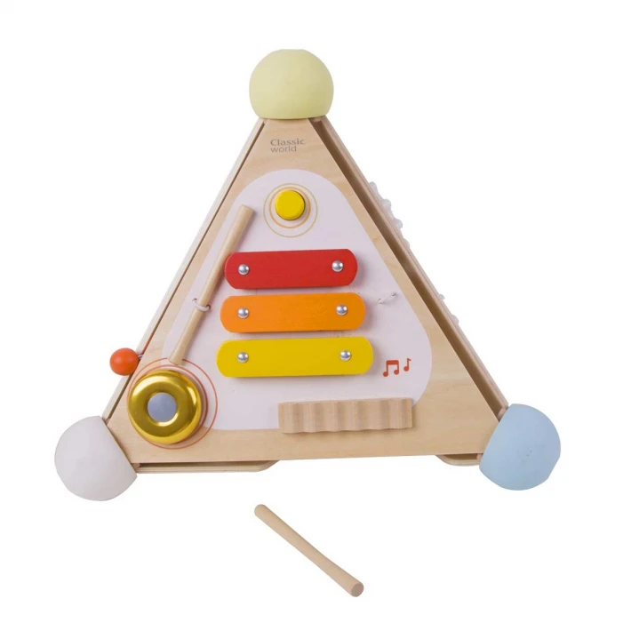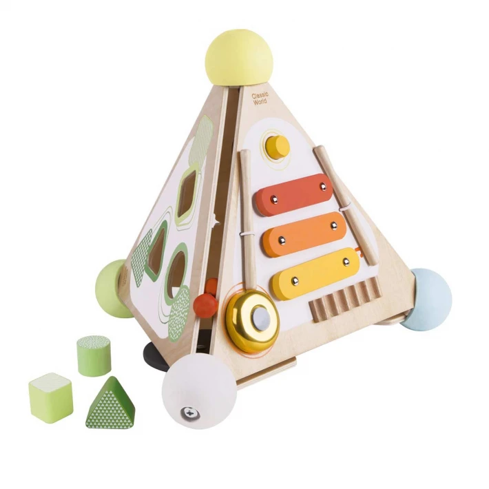 Всяка страна на пирамидата предоставя възможност за различни игри - музикалната част има различни бутони със звуци, ксилофон и звънец, а другата е направена така, че да се научат да разпознават фигурите;
