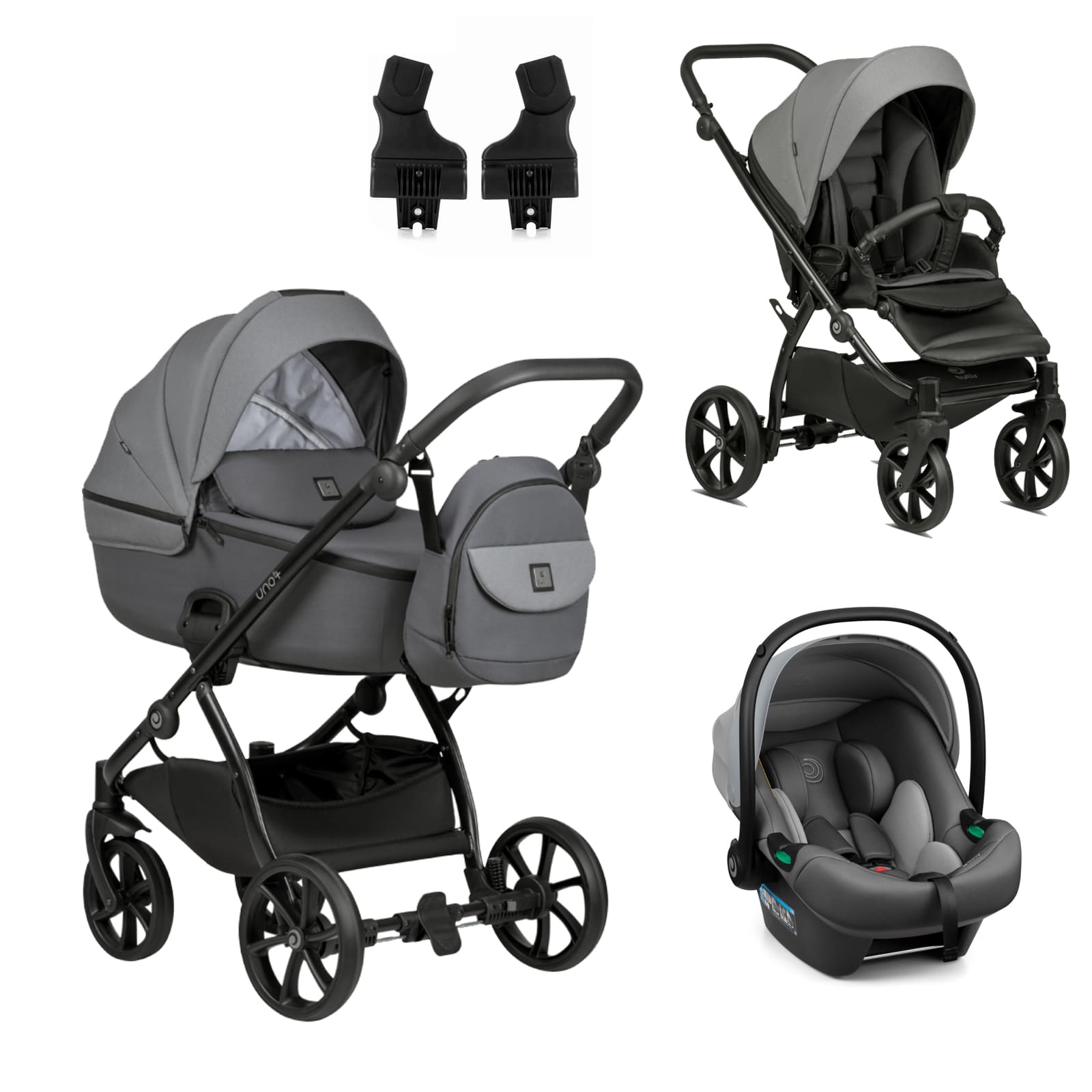 Съвместимо с рамата на количката, посредством адаптори, които са включени в комплекта;
