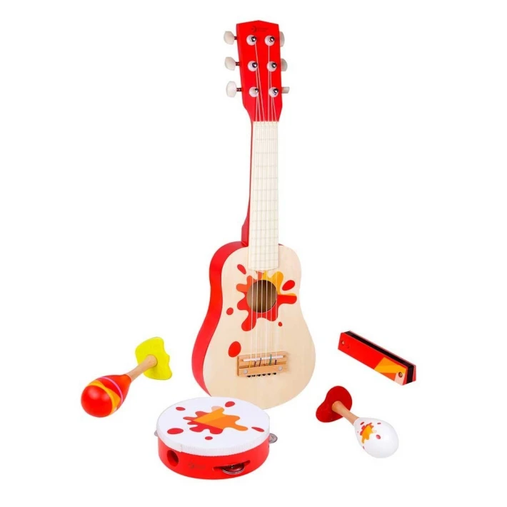 Покажете им как могат да се забавляват с този музикален комплект, като им помогнете да научат различните музикални инструменти и звуците, които те издават;