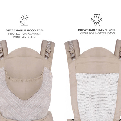 Осигурява безопасна, ергономична позиция за детето – краката му са разположени във формата на буквата „М“, което е оптимално за правилното му развитие, както е потвърдено от сертификата на Международния институт за тазобедрена дисплазия;