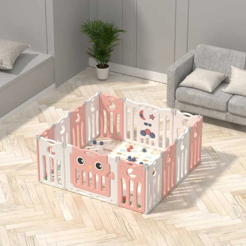 Бебешка ограда за безопасна игра Feelkids, Розово бухалче