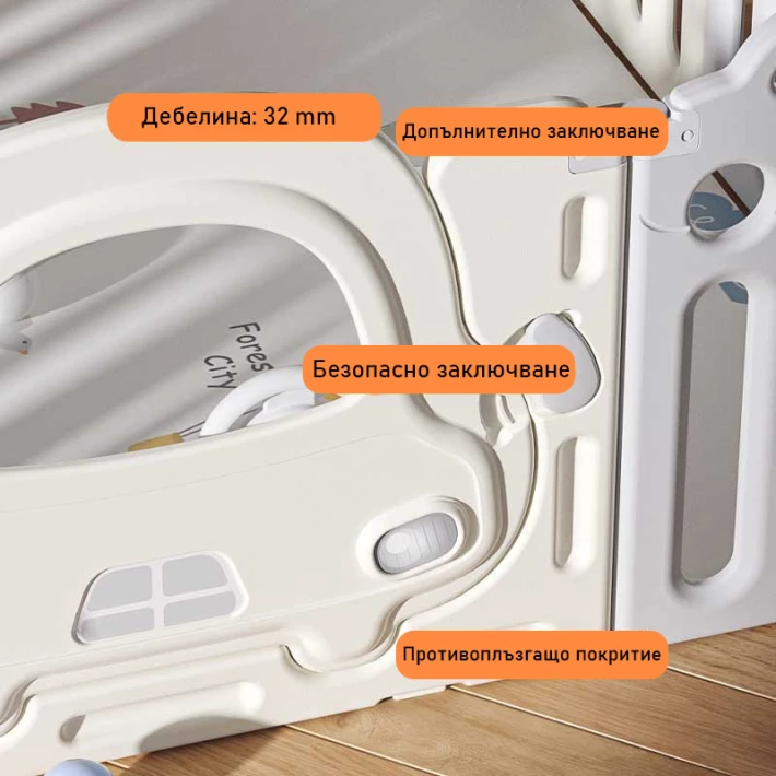 Бебешки и детски магазин "СЛАДУРЧЕТА" и марката "Feelkids" представят на Вашето внимание ограда със следните характеристики: