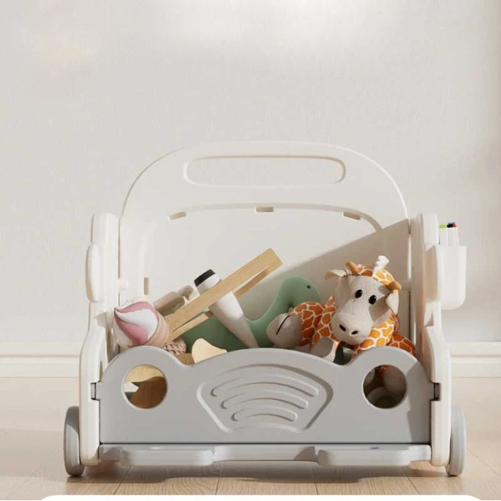 Детски подвижен органайзер с дъска за рисуване Feelkids, Сива кола
