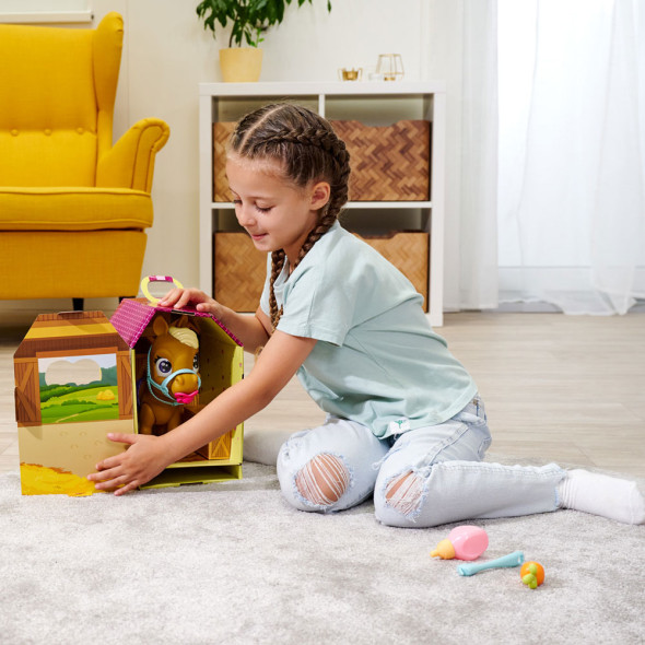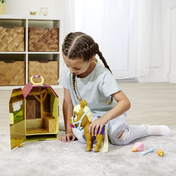 Ако го избършеш с вода, то става или синьо, или розово. Понито има красива руса опашка, която можеш да разресваш;