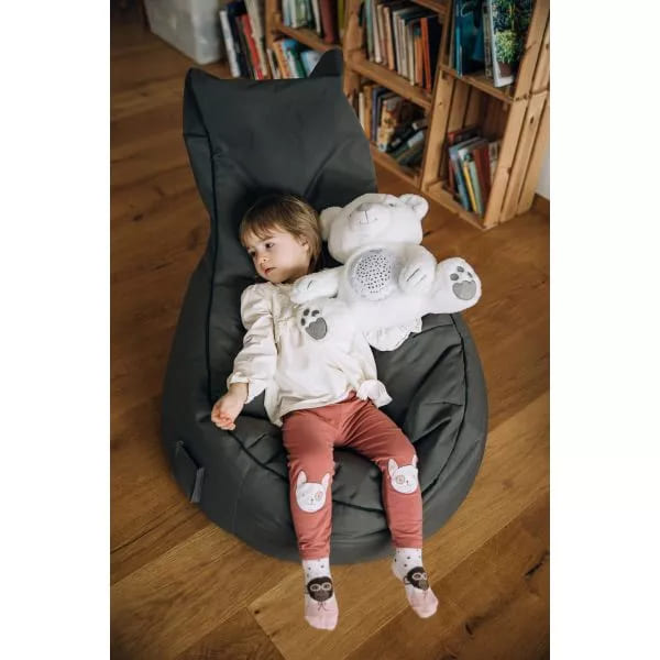 • Този мек, пухкав плюшен приятел разполага с 6-цветна прожекция, 10 успокояващи мелодии, 10 приспивни песни, 5 звука с бял шум и 5 регулируеми нива на звука;