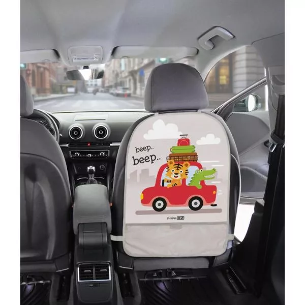 Симпатичен водоустойчив протектор за автомобилна седалка с мрежест джоб предназначен за защита от мръсотия и повреди;