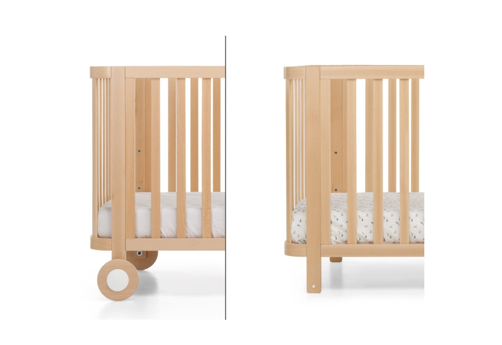 С порастването на детето детското креватче Evo може да се трансформира в просторно креватче чрез закупуване на допълнителен дървен сет за удължаване Evo kit до размери 70/140 см;