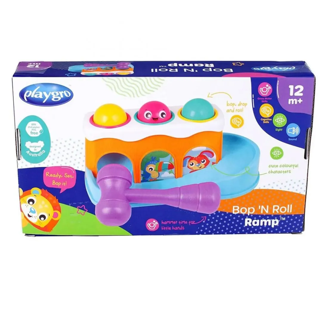 Удрянето и пускането на топките да се търкалят по рампата ще учи детенцето за причинно-следствените връзки;