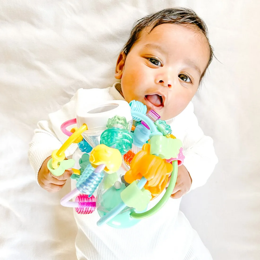 • Лесна за захващане, разклащане и търкаляне, което развива двигателните умения;