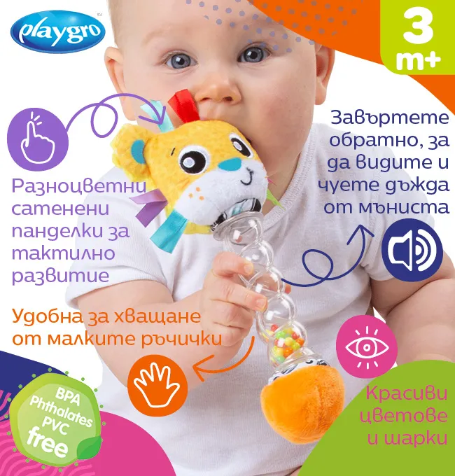 Бебешки и детски магазин "СЛАДУРЧЕТА" и марката "Playgro" представят на Вашето внимание играчка със следните характеристики: