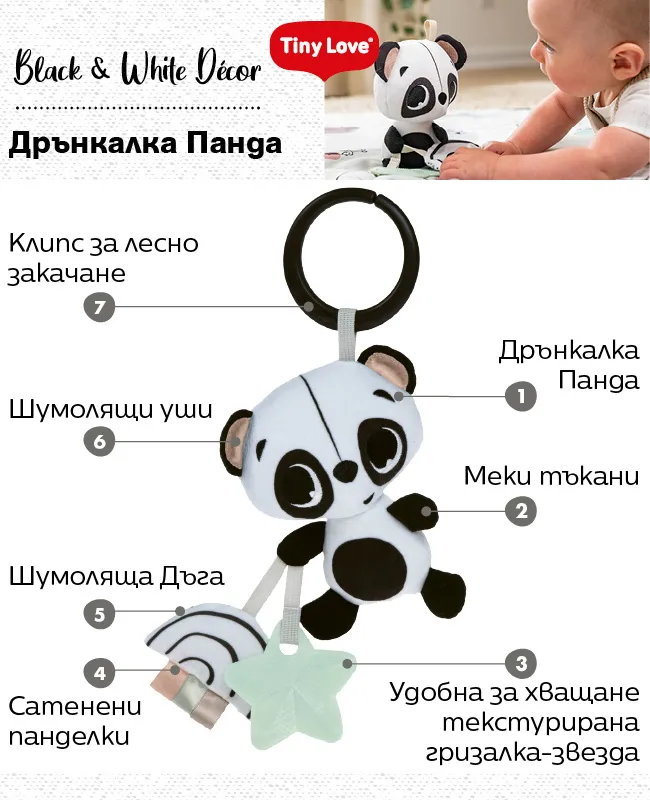 Бебешки и детски магазин "СЛАДУРЧЕТА" и марката "Tiny Love" представят на Вашето внимание дрънкалка със следните характеристики: