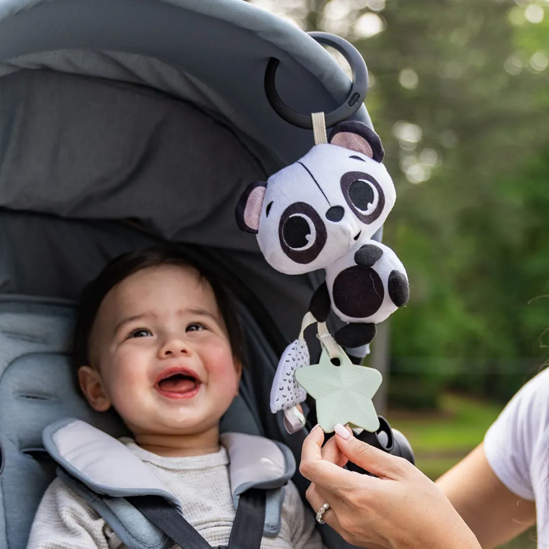 С удобен клипс за закачане на детската количка или столчето за кола, креватчето или бебешката кошара;