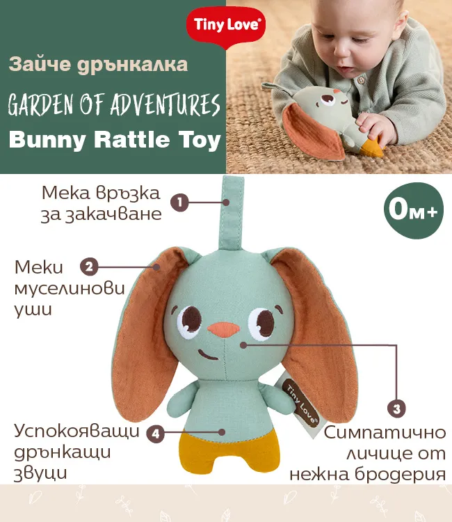 Бебешки и детски магазин "СЛАДУРЧЕТА" и марката "Tiny Love" представят на Вашето внимание дрънкалка със следните характеристики: