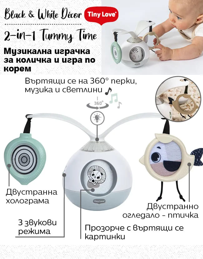Бебешки и детски магазин "СЛАДУРЧЕТА" и марката "Tiny Love" представят на Вашето внимание играчка със следните характеристики: