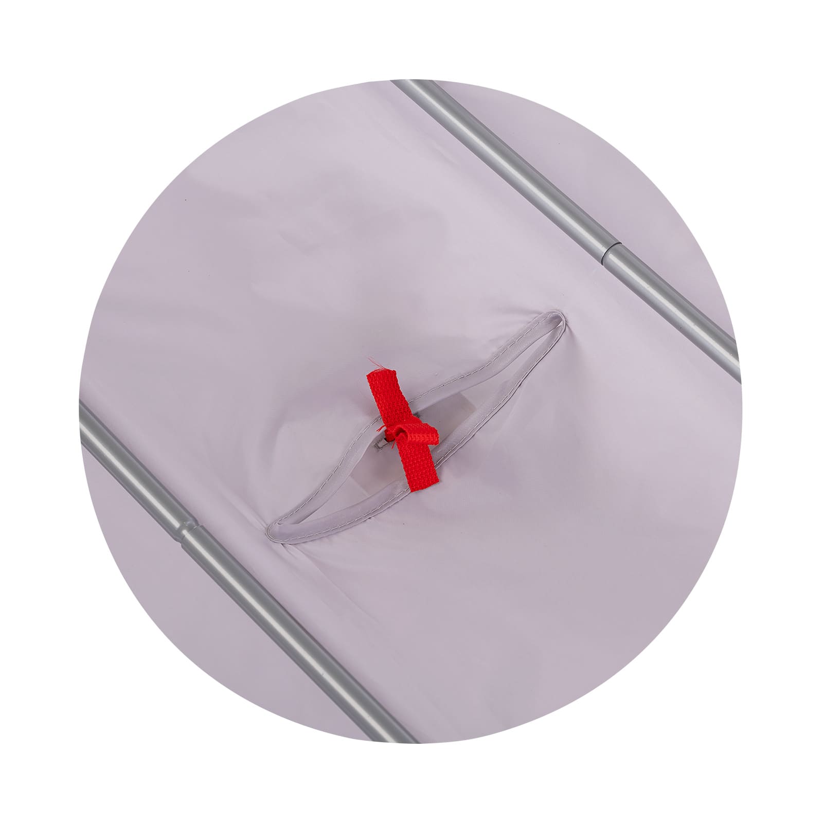 Снабдена с лесен механизъм за сгъване с една ръка. След като издърпате дръжката в центъра на кошарата нагоре, страниците се сгъват сами, което прави много лесно прибирането й за транспортиране или съхранение;