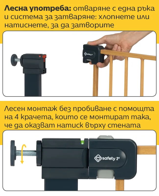 Бебешки и детски магазин "СЛАДУРЧЕТА" и марката "Safety 1st" представят на Вашето внимание предпазна преграда със следните характеристики:
