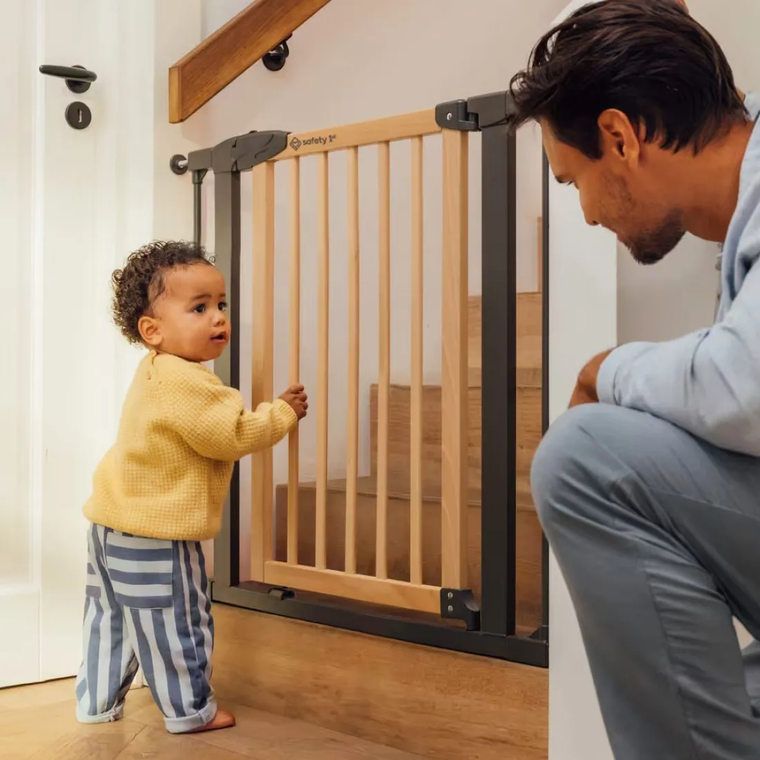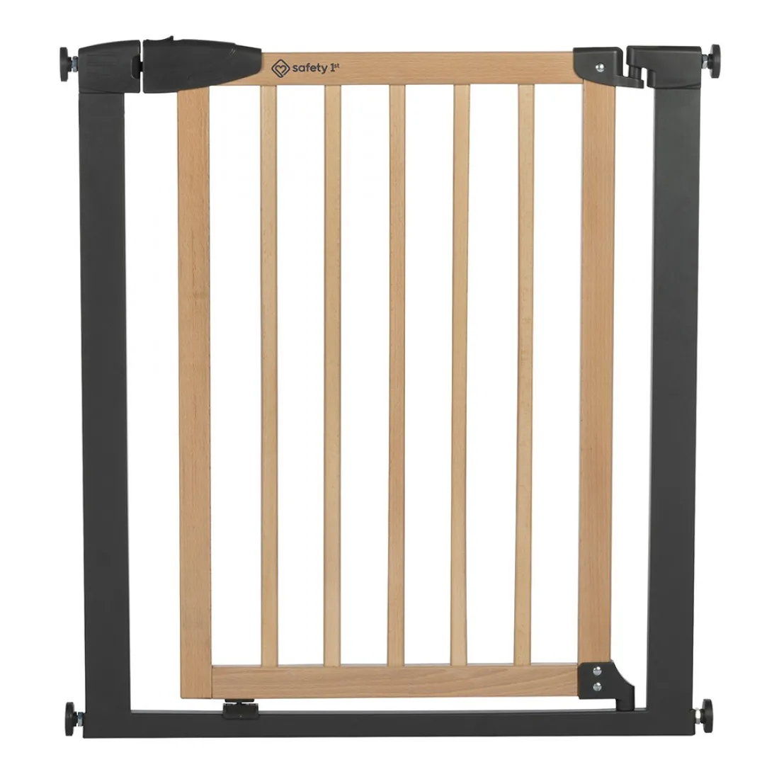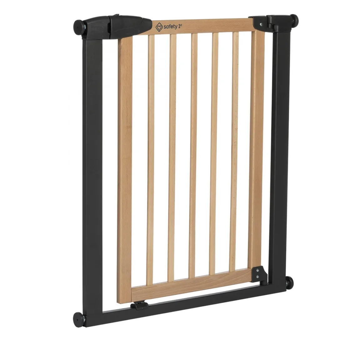 Изработена от естествено дърво и метална графитна рамка, предпазната врата предлага модерен дизайн, подходящ за всеки домашен интериор;