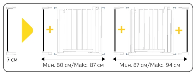 Може да се удължи до 94 см с допълнителни удължители от 7 см, които се продават отделно;