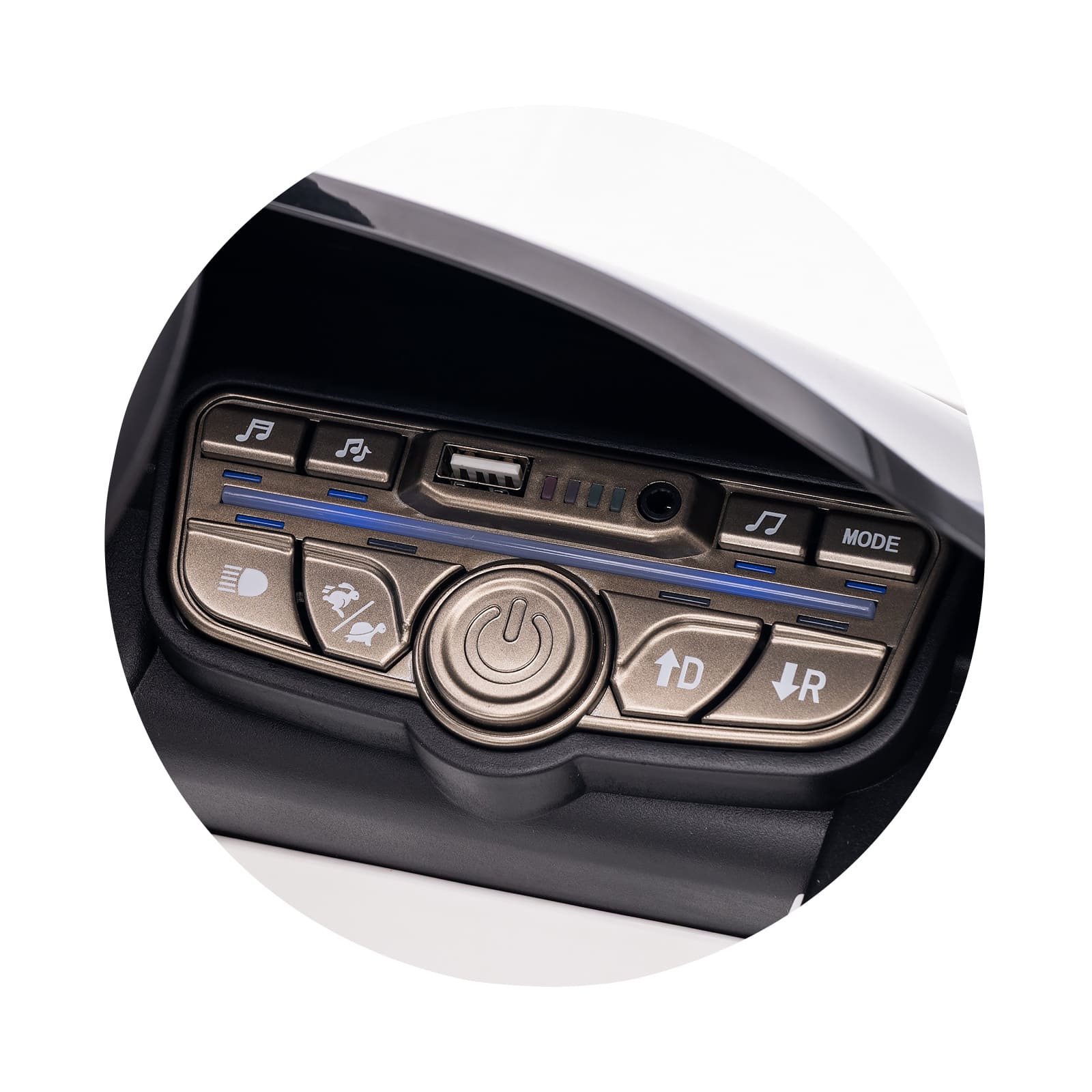 • Музика, MP3 вход и индикатор за заряда, осигуряват забавление по време на всяко каране;