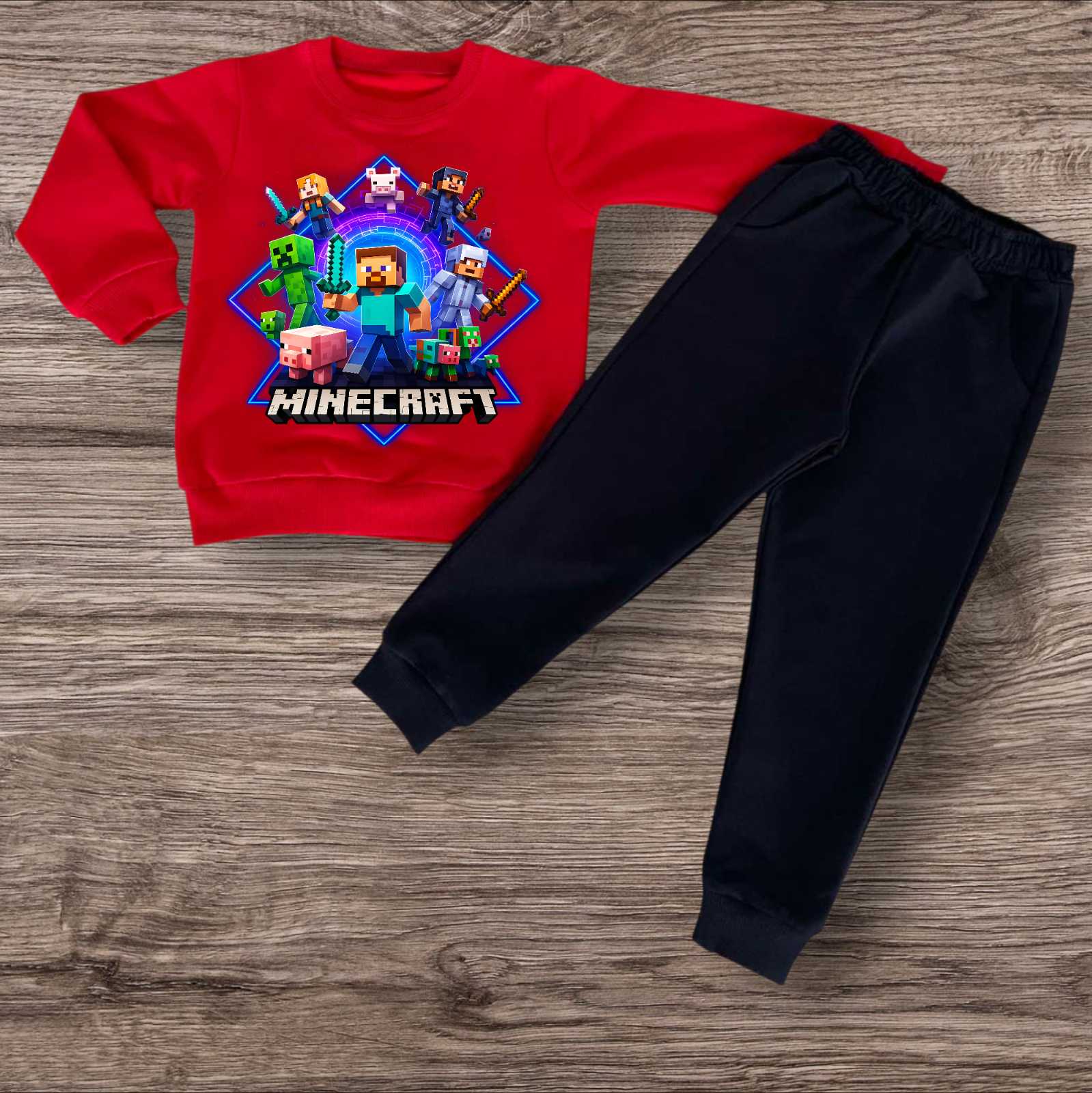 Блузата е с дълъг ръкав в червен цвят с апликация на Minecraft;