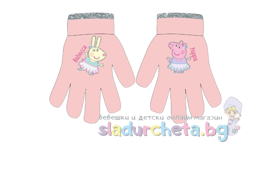 Ръкавиците са в розов цвят с цветна апликация на Peppa Pig;