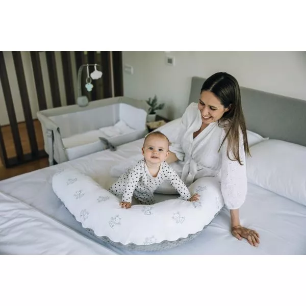 Възглавница за кърмене Bubaba, Сиво-бяла със слончета