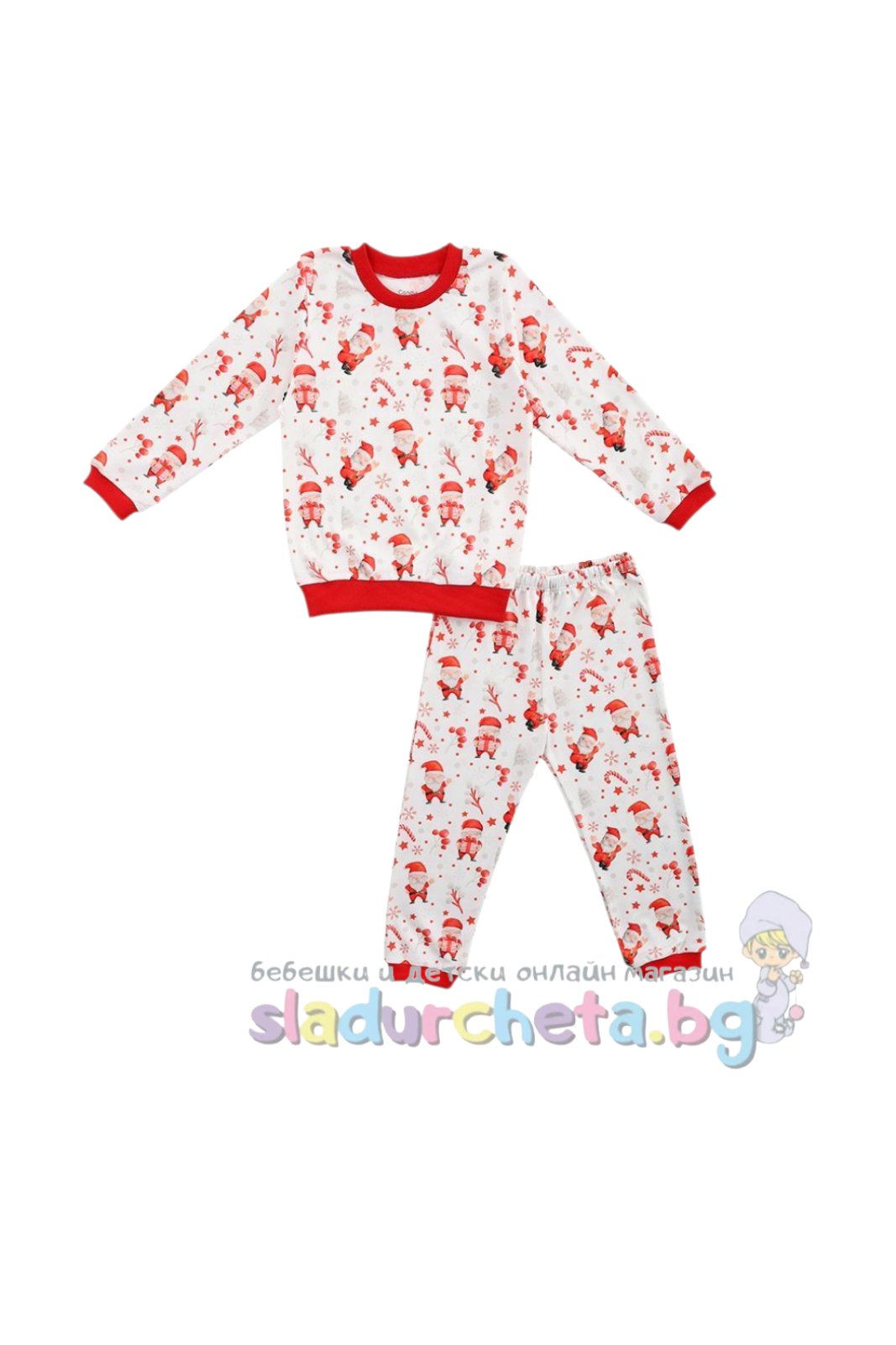 Блузата е с дълъг ръкав в бял-червен цвят с коледна щампа;