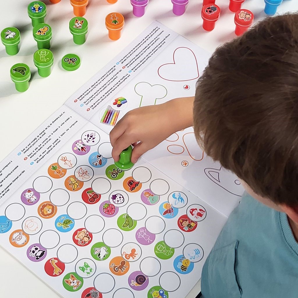 Комплект за занимания с над 45 различни печата за развитие на креативността и двигателните умения на децата;