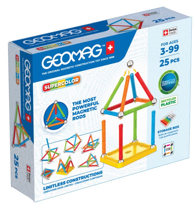 Образователните игри Geomag насърчават развитието на децата, като освобождават въображението и креативността им, като същевременно развиват логическото им мислене и двигателните им умения;