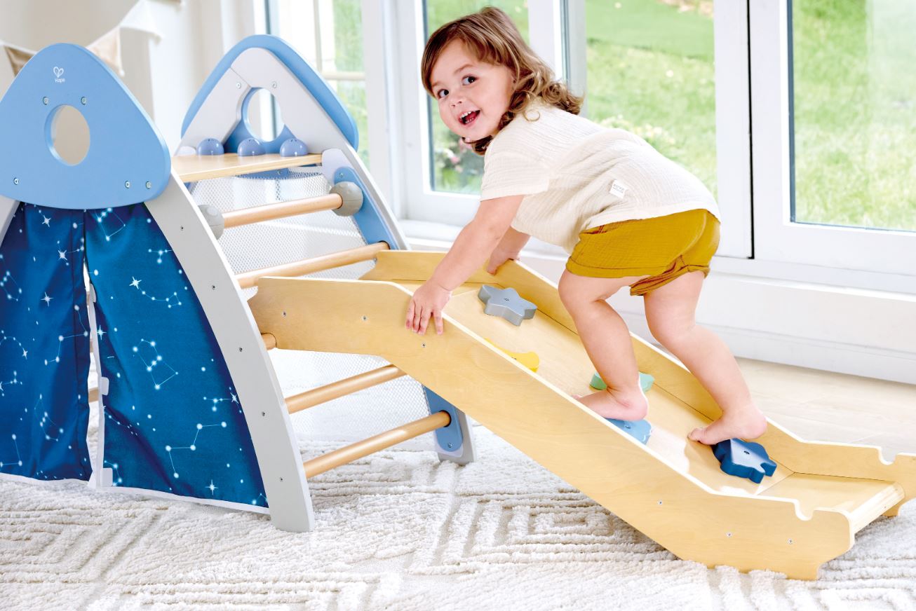 Дървен комплект Hape, 4 в 1 Комплект за катерене и пързаляне