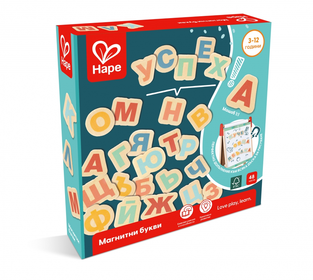 Насърчете естественото желание на вашето дете да учи и му помогнете да изгради увереността му с този цветен и вълнуващ комплект магнитни букви на български език от 48 части;