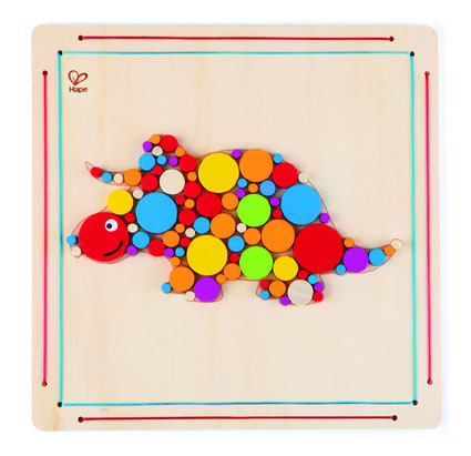 Мозайка с дървени елементи, която се подрежда върху шаблон;
