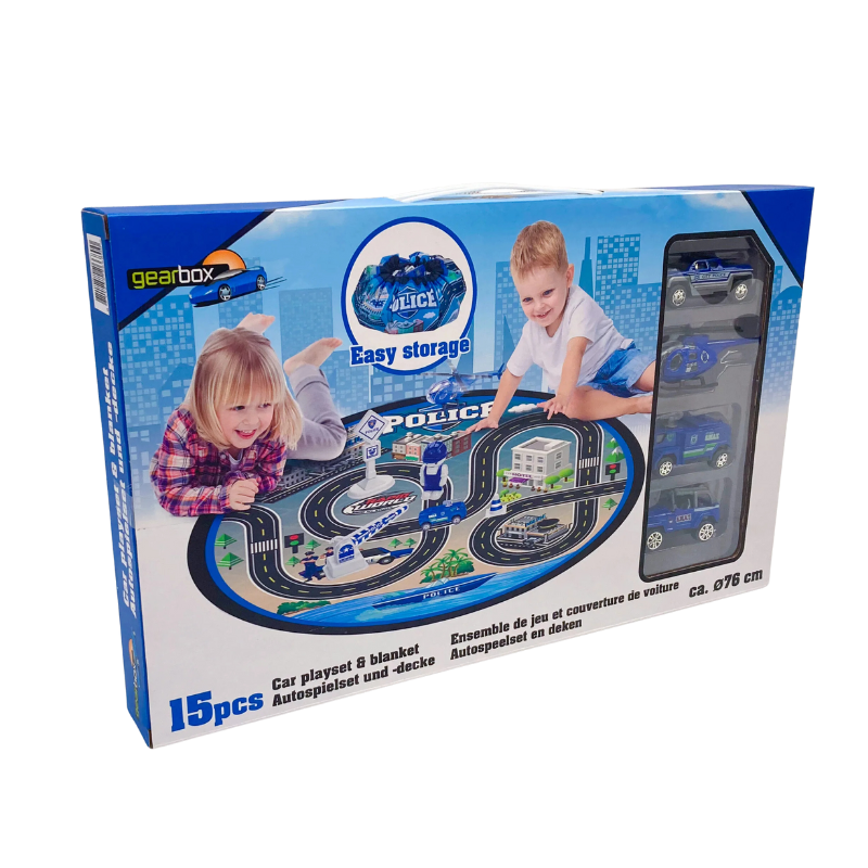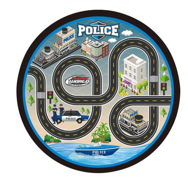 Комплектът се предлага с мека и удобна подложка с впечатляващ полицейски дизайн, която ще потопи децата в атмосферата на полицейски приключения;