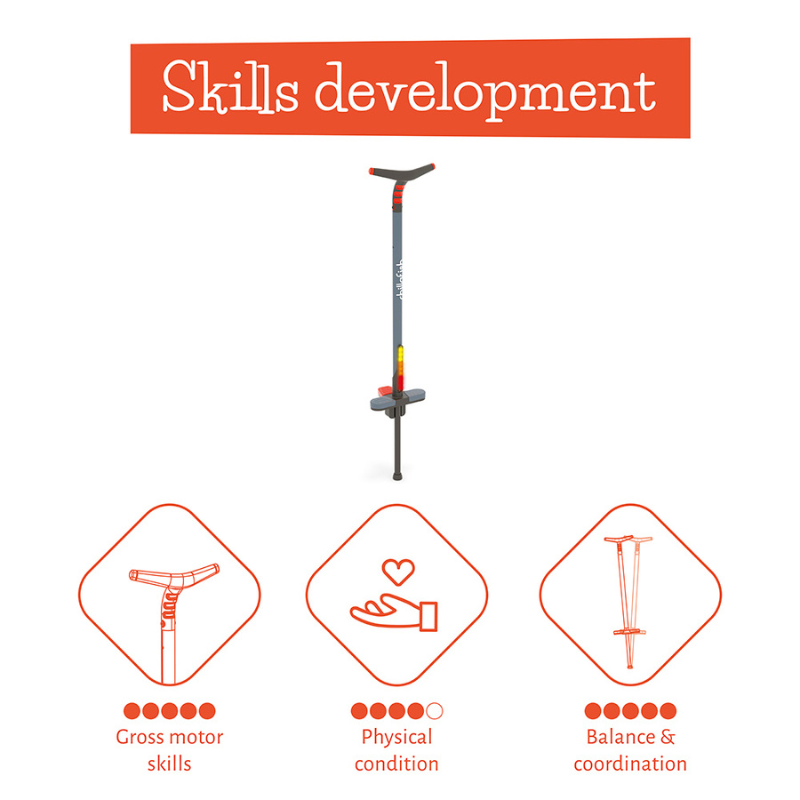 Пого стикът е проектиран с неуморна здрава пружина вътре в тръбата, която ще Ви държи в движение завинаги;