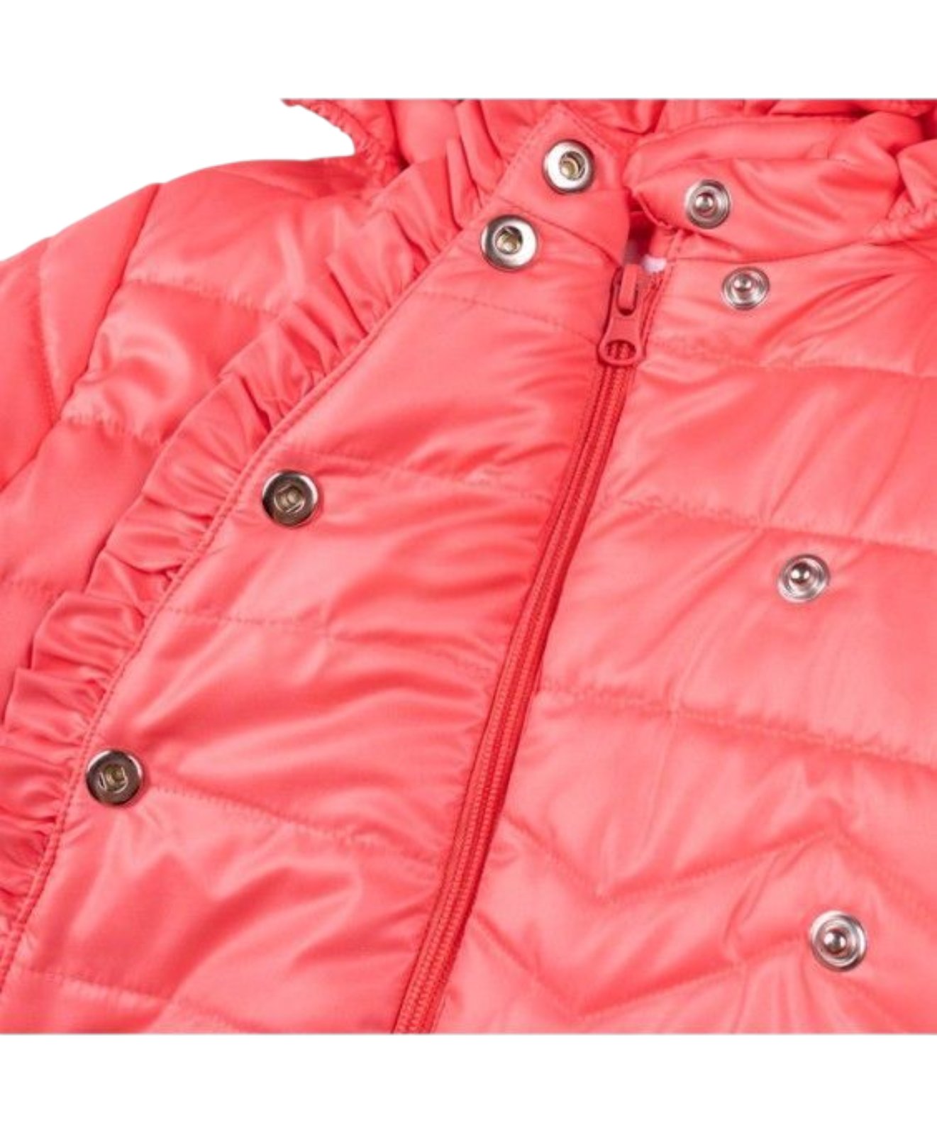 Якето е с дълъг ръкав, с два джоба и качулка в цвят корал;