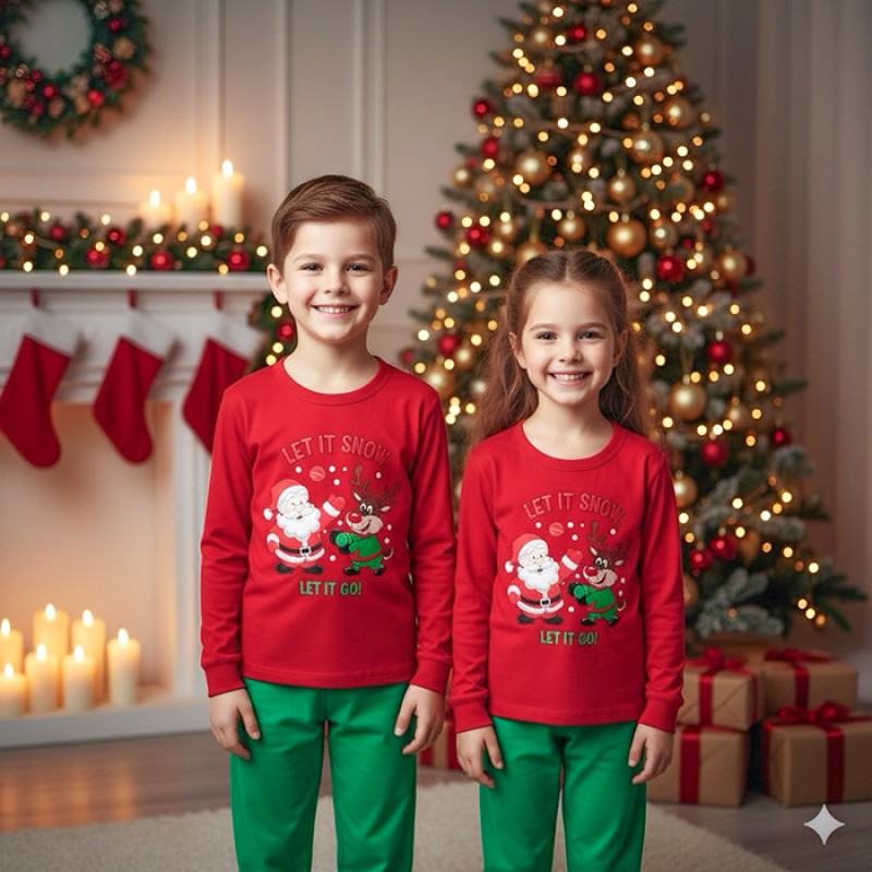 Блузата е с дълъг ръкав в червен цвят с коледна апликация;