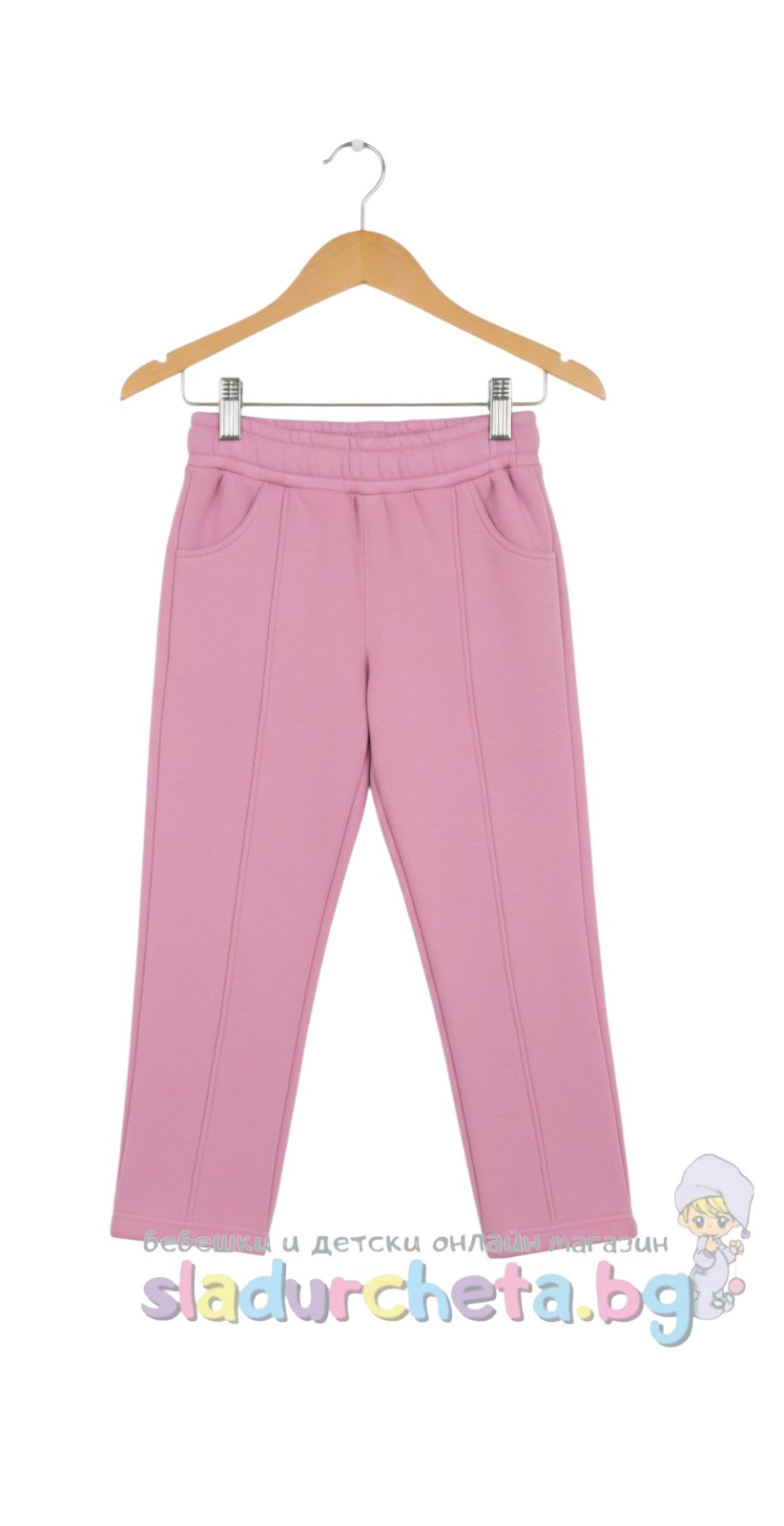 Панталонът е в розов цвят с два джоба и ластична част на талията;
