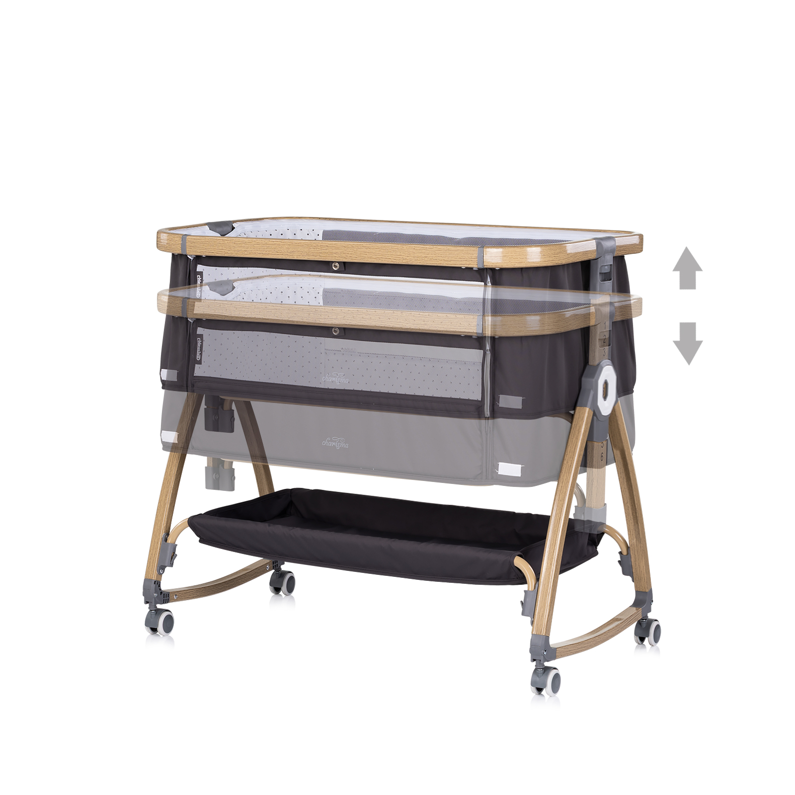 Регулируемата падаща страна позволява лесно и сигурно прикрепяне към леглото на родителите;