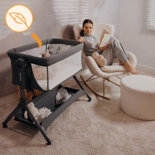 Функцията за регулиране позволява височината на самостоятелното легло да бъде настроена спрямо височината на човека, който се грижи за детето, като помага за намаляване на напрежението в гърба;