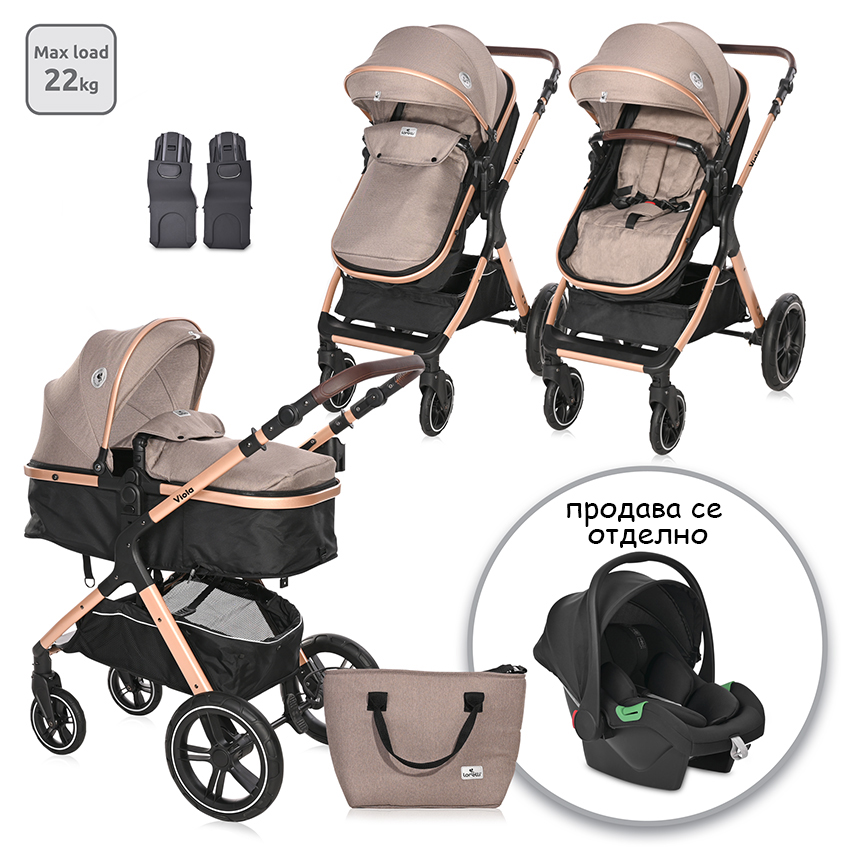 Рамата на количката е съвместима със Столче за кола Lorelli Aria Luxe, с помощта на адапторите включени в комплекта (предлага се отделно);