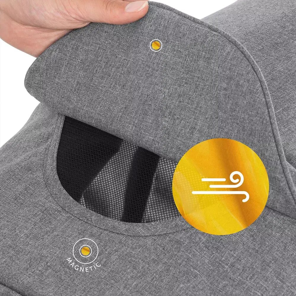В горната си част, сенникът има отвор с прозорче за по-добра циркулация на въздуха;