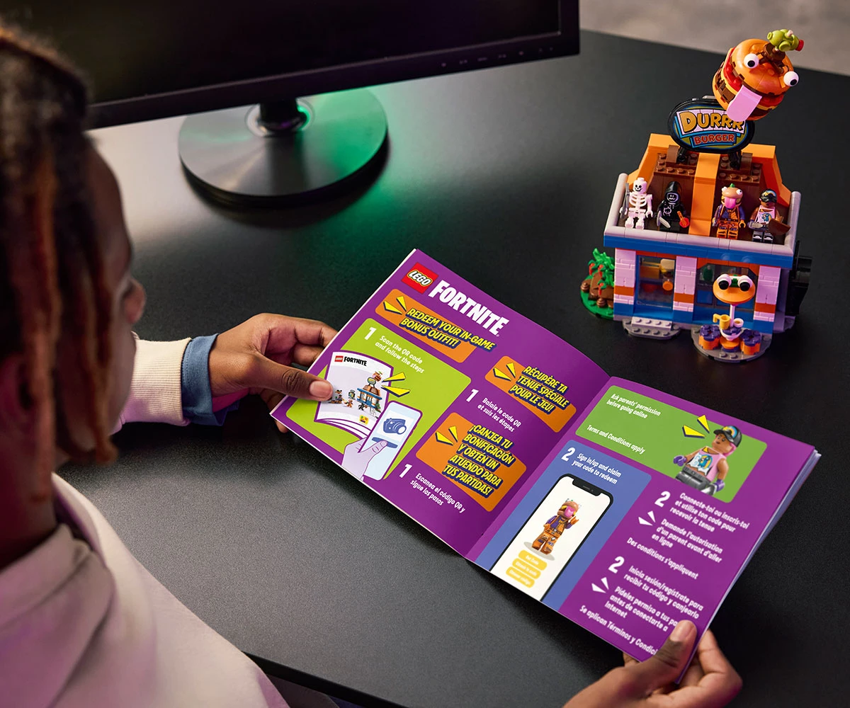 Бону с предмет в играта – комплектът включва бонус облекло на Beef Boss във видеоиграта LEGO® Fortnite®, който строителите могат да получат, като сканират QR код в инструкциите за построяване;