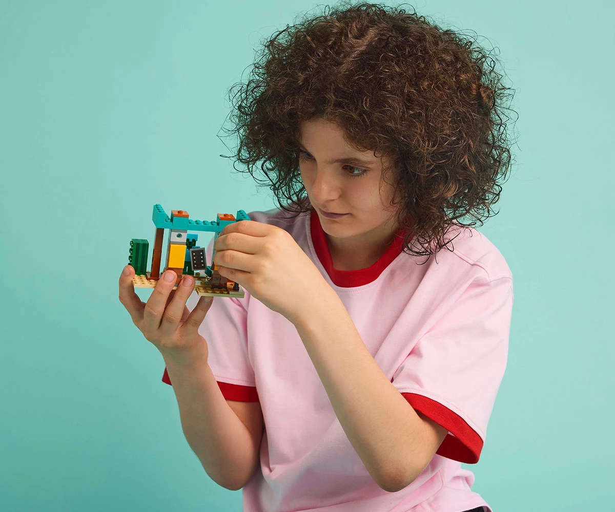 Minecraft® като и стински – играчките за построяване LEGO® Minecraft за деца осигуряват на играчите различен начин да се насладят на играта с мобове, сцени и функции, на които те вдъхват живот чрез творческо конструиране с тухлички LEGO;