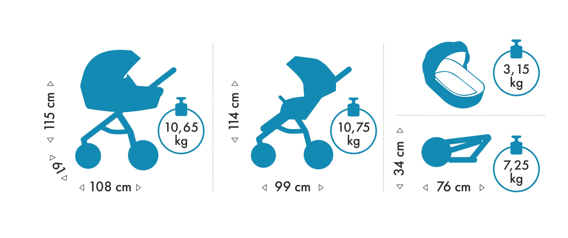 • Размери в сгънато състояние със седалката: 76x61x44см или 82х61х39 (в зависимост от посоката на седалката);