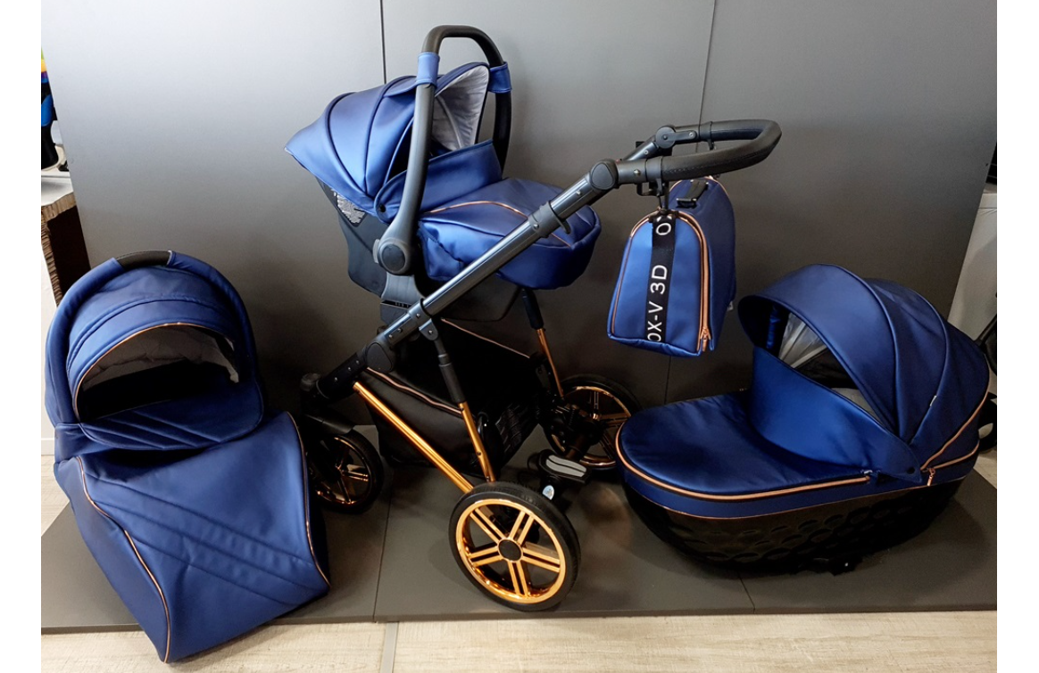 Бебешка количка 3в1 Adbor Avenue 3D eco, синя кожа/черен
