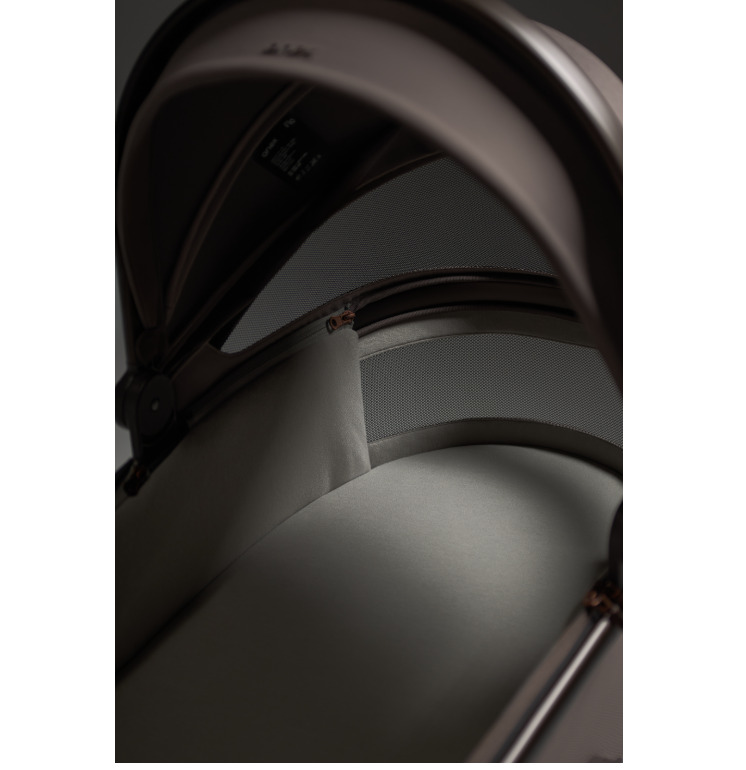 • Въздухопропускливият сенник, изработен от плат, обогатен с UV филтър, предпазва бебето от пряка слънчева светлина и други външни фактори;